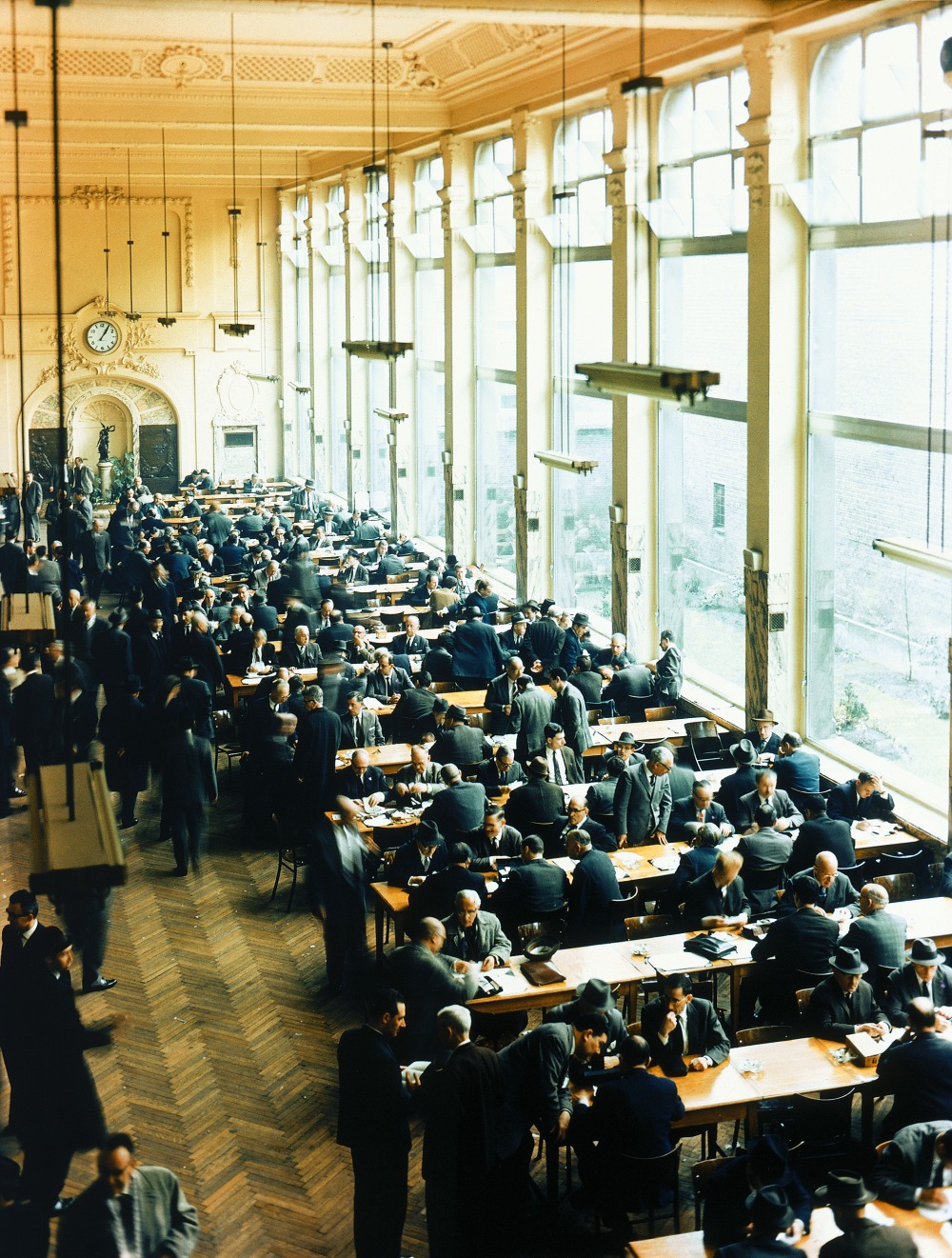The great hall of the Diamond Bourse of Antwerp, the most important trading centre for rough and polished diamonds in the world. (De Beers Archives)