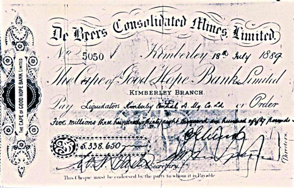 On 18th July 1889, Cecil Rhodes bought all shares in Kimberley Central, the company of his great competitor Barney Barnato, for a record amount of 5,338,650 pounds Sterling. (De Beer Archives)