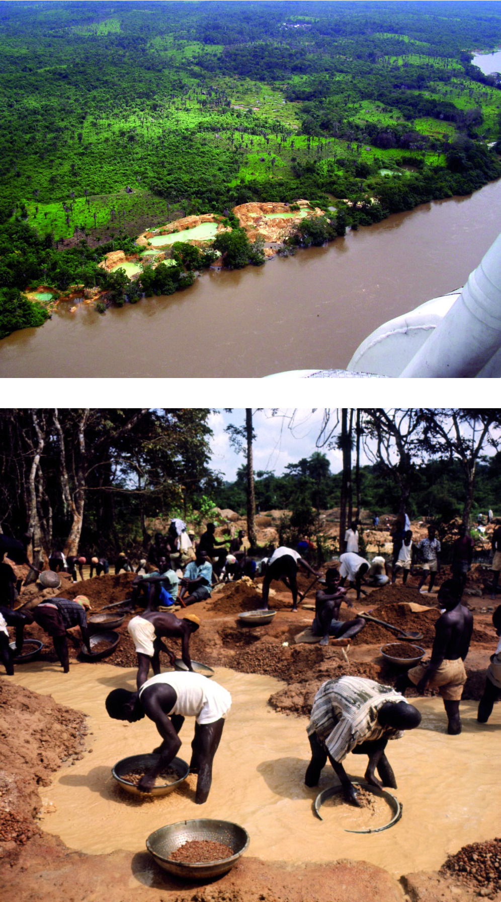 Apart from the official diamond trade, there also exists a circuit of diamonds from illegal sources, the so-called blood or conflict diamonds. With the proceeds, civil wars have been and sometimes are waged, for example in countries such as: Liberia, Sierra Leone, the Democratic Republic of Congo, and Angola. In December 2002, an international treaty was drawn up to counteract this trade, the Kimberley Process Certification Scheme. The participating countries (45 in 2005) pledge that they will trade in rough diamonds exclusively with other participating countries. Since 2003, the scale of the trade in illegal diamonds has declined from 4% (although some mention 15%), to less than 1% of the total world trade in diamonds. Photo: Non-state-controlled diamond extraction occurs in various African countries such as Liberia, Sierra Leone, Angola (photos). To counteract the trade in these illegal diamonds, most countries have combined together in the Kimberley Process (December 2002). (De Beers Archives).