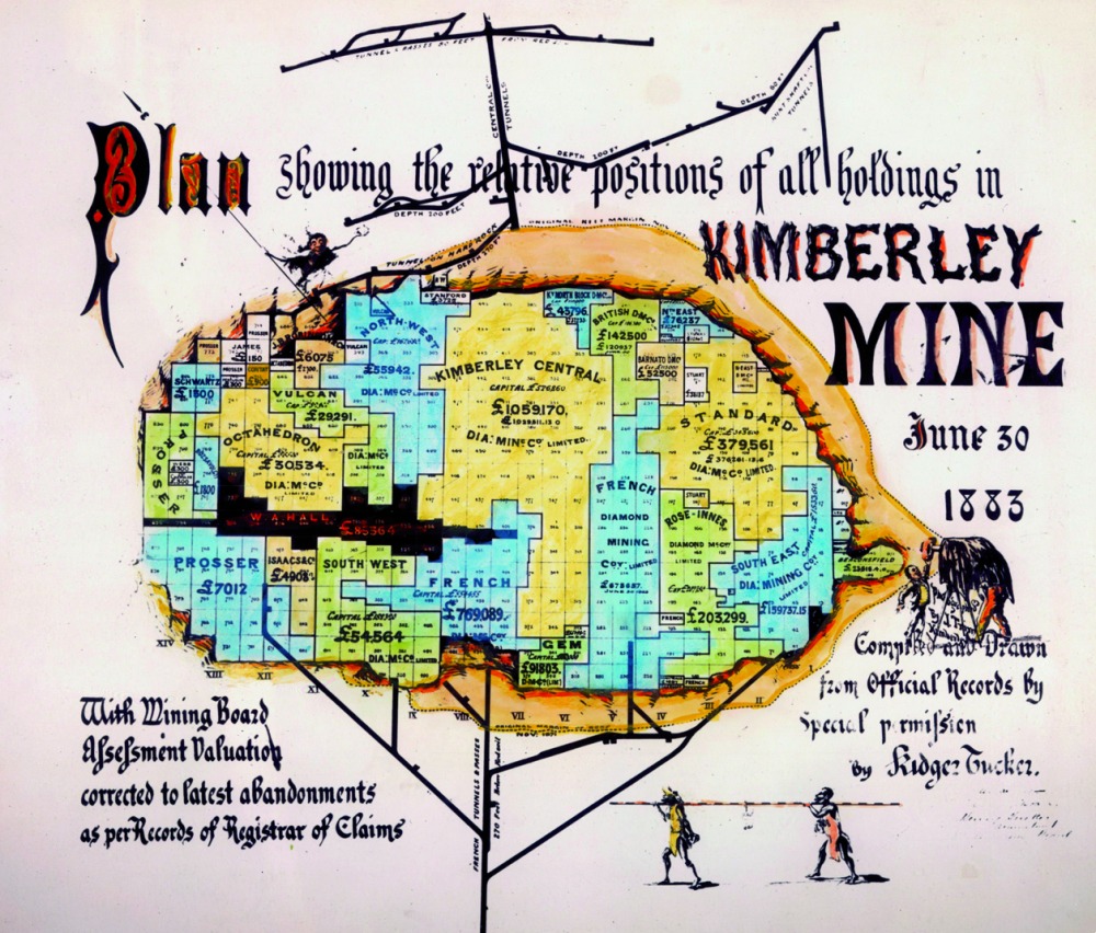 Map dating from 1883, showing all ‘holdings’ in the Kimberley mine. (De Beer Archives)